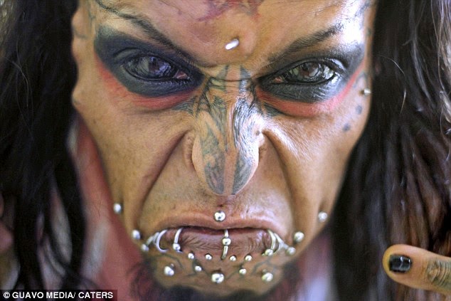 Lelaki berusia 42 tahun ini menghabiskan 11 tahun daripada hidupnya untuk 'mengubah suai' tubuhnya, termasuk mentatu seluruh bola matanya menjadi hitam, membuat implan tanduk pada dahi dan lengan.